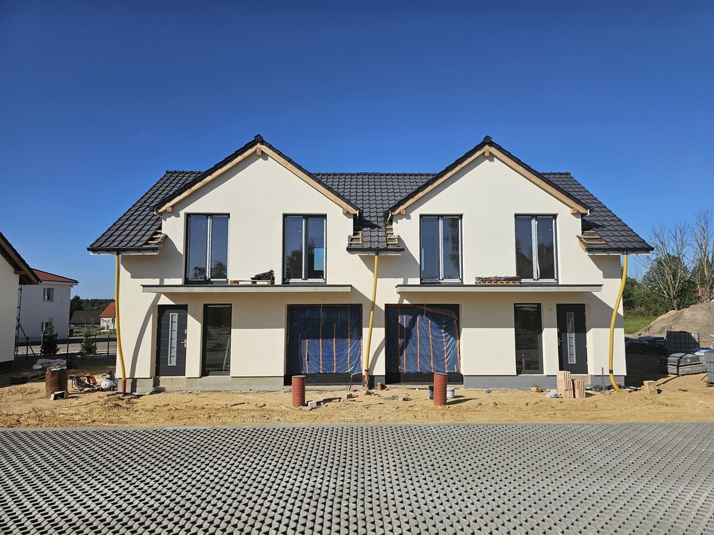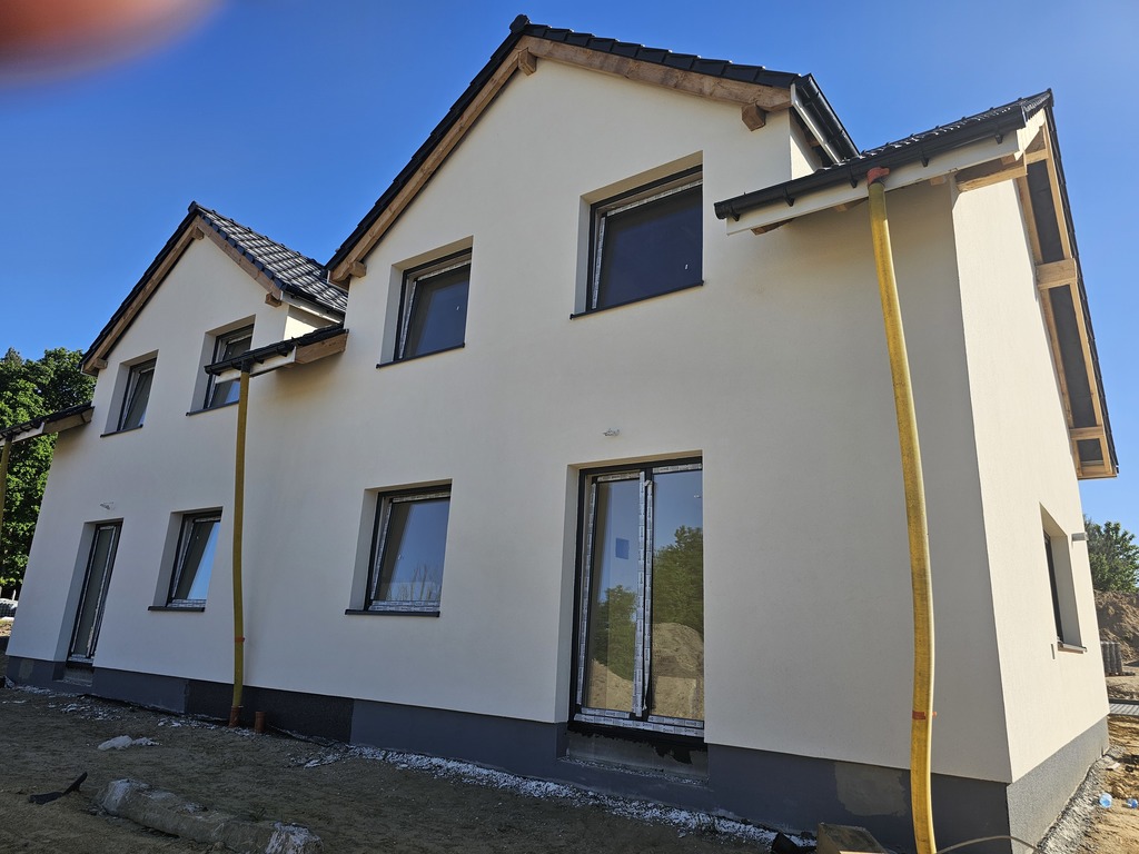 Nowe zamknięte osiedle składające się z 4 domów 2 lokalowych /obecnie została jedna połówka bliźniaka dostępna 2026 r./ pomiędzy Płonią a Jezierzycami.