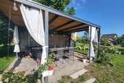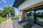 Działka stanowi powierzchnię 736 m², jest w pełni ogrodzona oraz zadbana. Znajduje się na niej zadaszone miejsce do biesiadowania oraz grilowania. Z salonu również jest wyjście na taras, na którym można odpocząć oraz napić się kawy. Na podjeździe przed domem znajdują się miejsca postojowe.