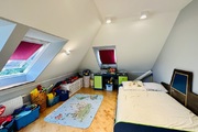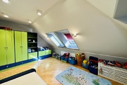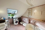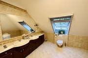 Szerokie schody prowadzą na piętro domu gdzie znajduje się 5 sypialni/ 10,74 m2, 12,86 m2, 13,68 m2, 13,95 m2, 18,85 m2/z czego jedna z sypialni ma prywatną łazienkę i garderobę. Dodatkowa łazienka z wejściem z hollu.