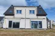 Przedmiotem oferty jest dom w zabudowie bliźniaczej w standardzie surowym zamkniętym, usytuowany na działce o powierzchni od 219 m2. Powierzchnia całkowita segmentu to 79,38m2 plus murowana wiata na samochód. Na parterze znajduje się salon z aneksem kuchennym o powierzchni 31,89m2 z wyjściem na taras, wc z kabiną prysznicową (3,12m2), korytarz (3,25m2) oraz schowek (3,02m2). Na piętrze o powierzchni całkowitej 37,63m2 znajdują się 3 pokoje i łazienka.