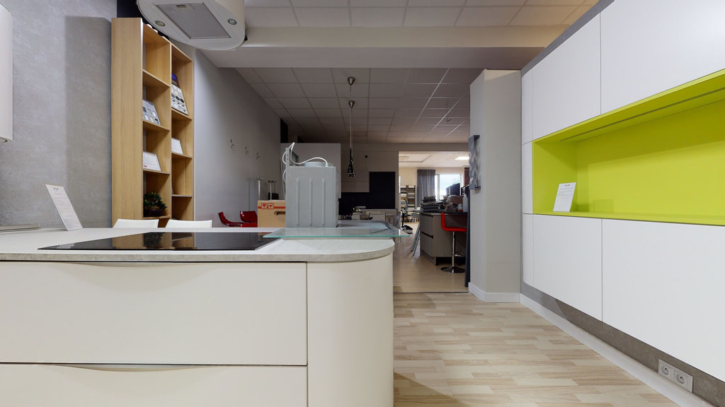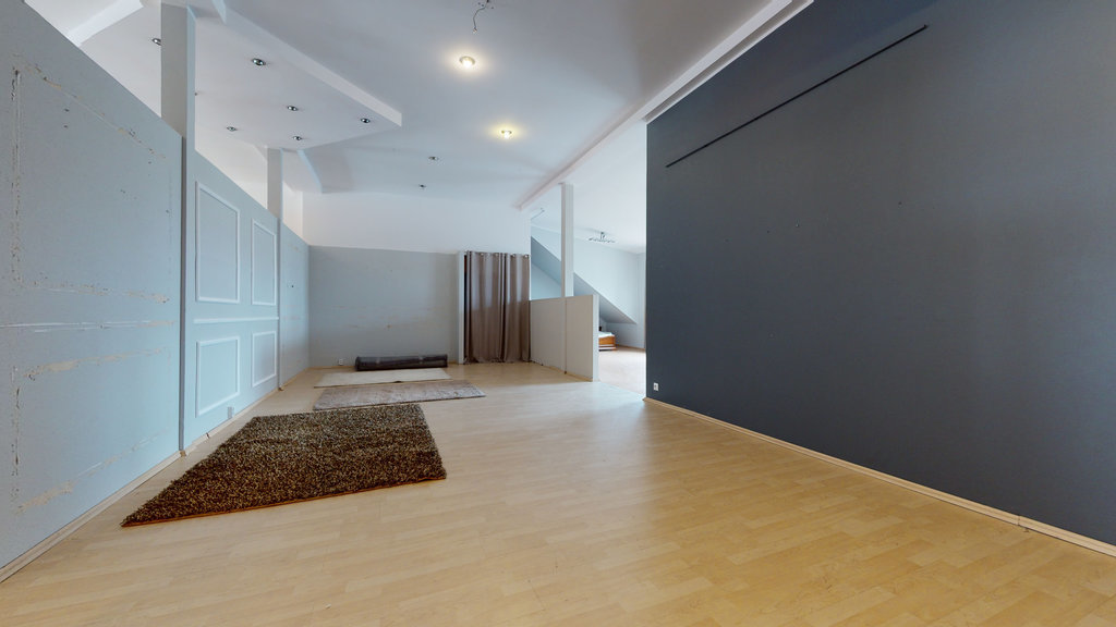 Na parterze, poza salą sprzedaży znajdują się: węzeł sanitarny i pokój biurowy. Na pierwszym piętrze sala sprzedaży, oraz węzeł sanitarny, kotłownia i pokój biurowy. Drugie piętro to kolejna sala sprzedaży, zaplecze dla personelu i toaleta.