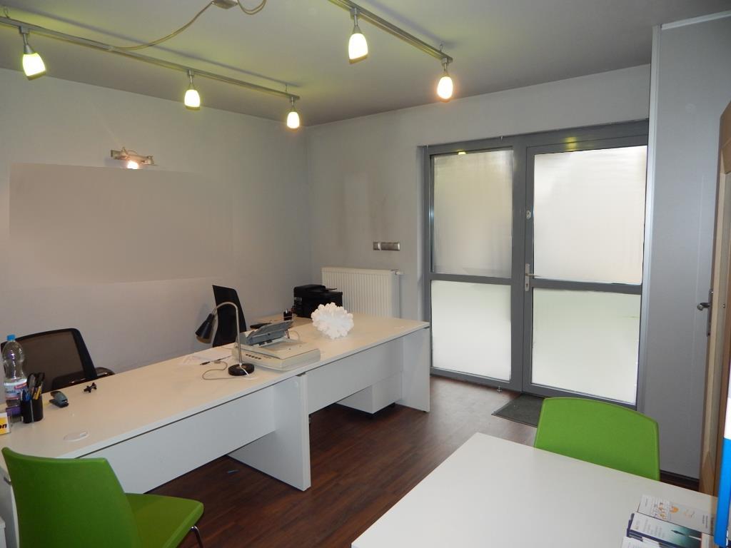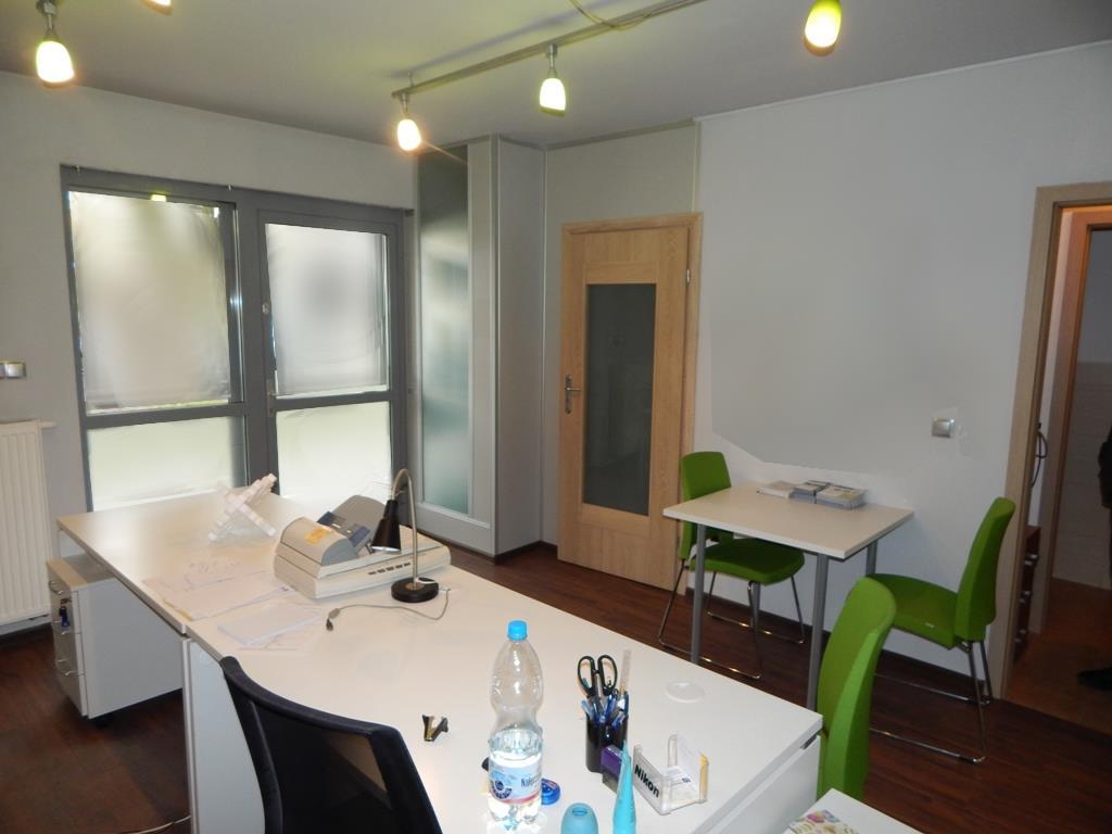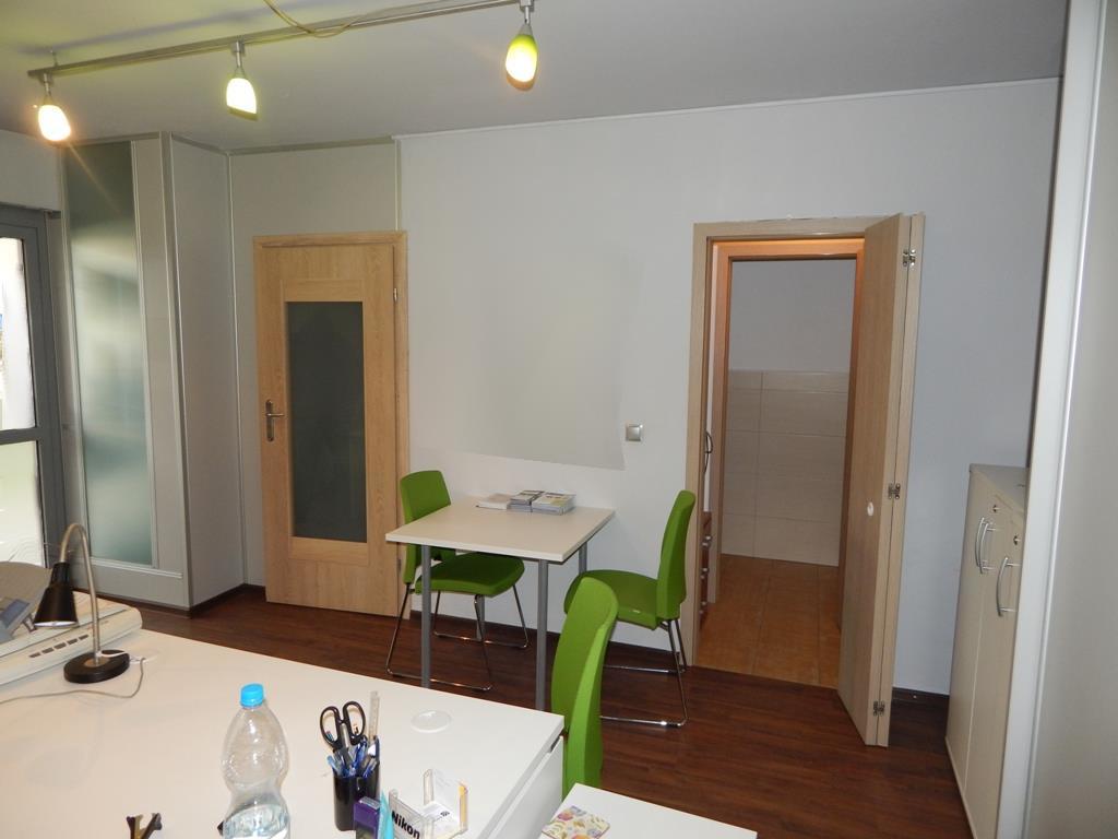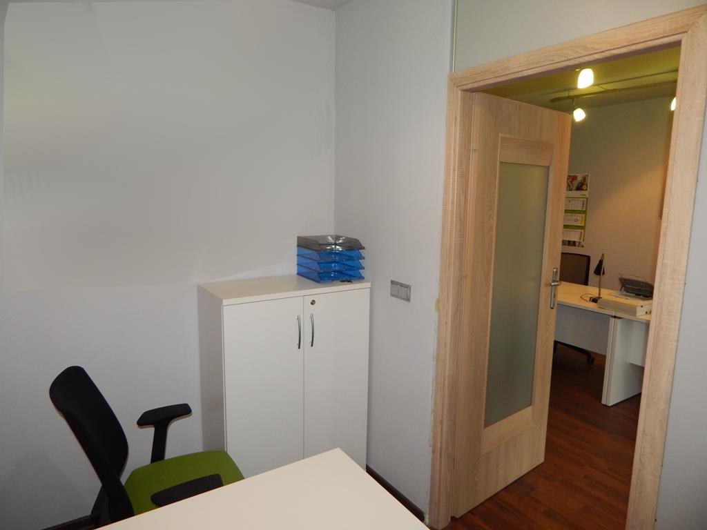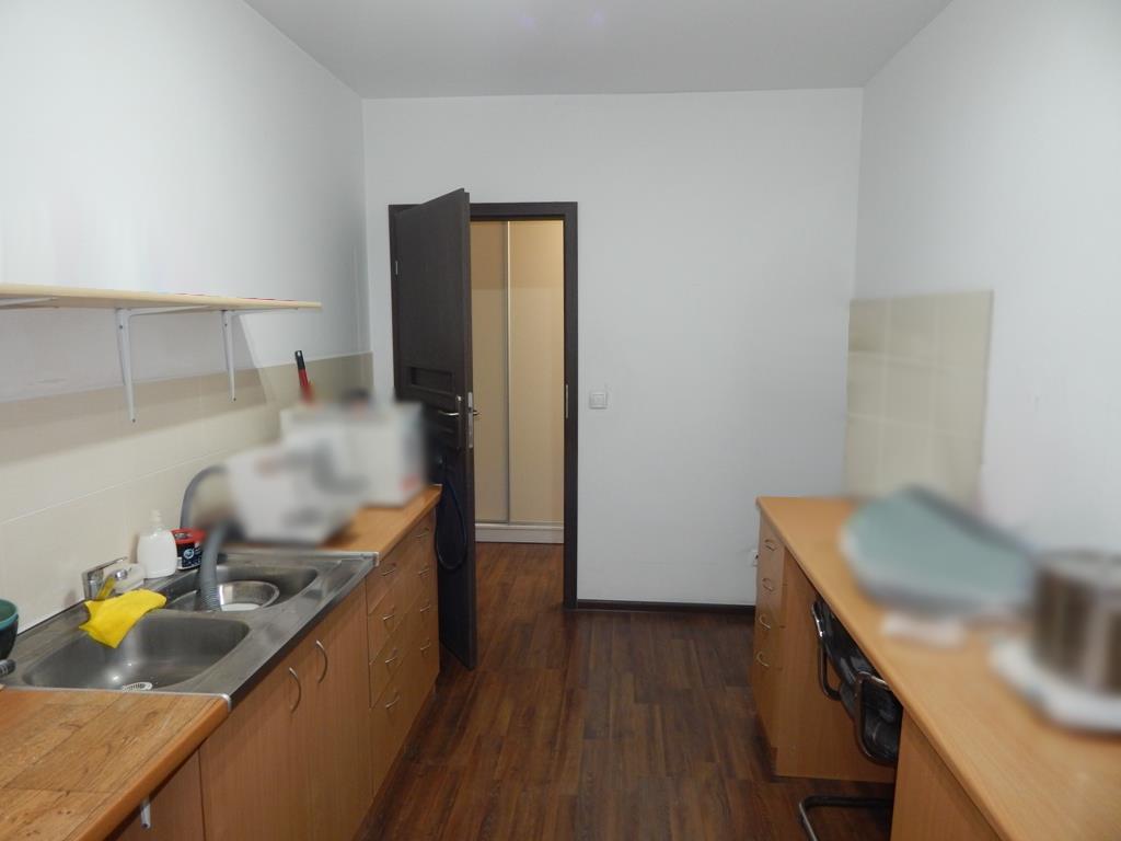 – w części biurowo-usługowej z osobnym wejściem z ulicy (sala sprzedaży/obsługi klienta ok. 20 m2, gabinet (ok. 4 m2), pomieszczenie socjalne z aneksem kuchennym oraz toaleta).