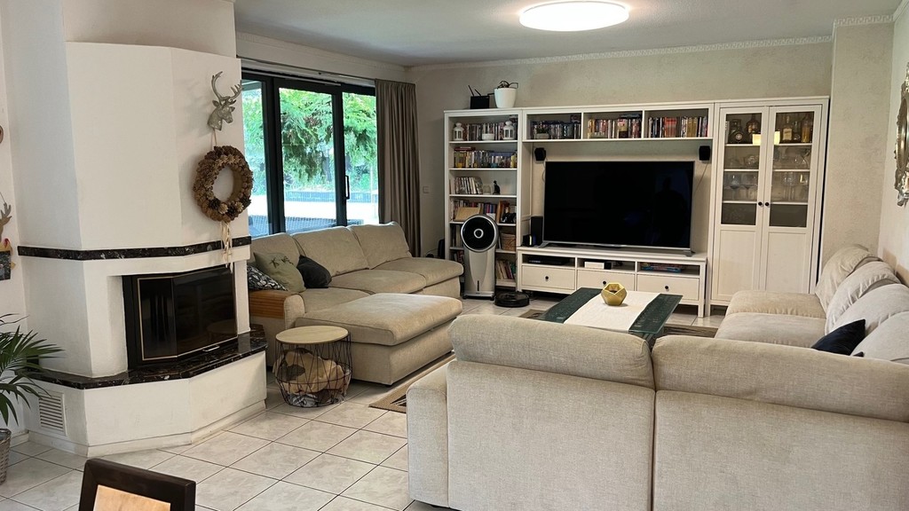 Liczne nasadzenia roślin i drzew (z automatycznym nawadnianiem ogrodu), miejsce do grillowania, palenisko na ognisko, pom. gospodarcze około 45m2 z dużym wybiegiem dla psa (około 100m2).