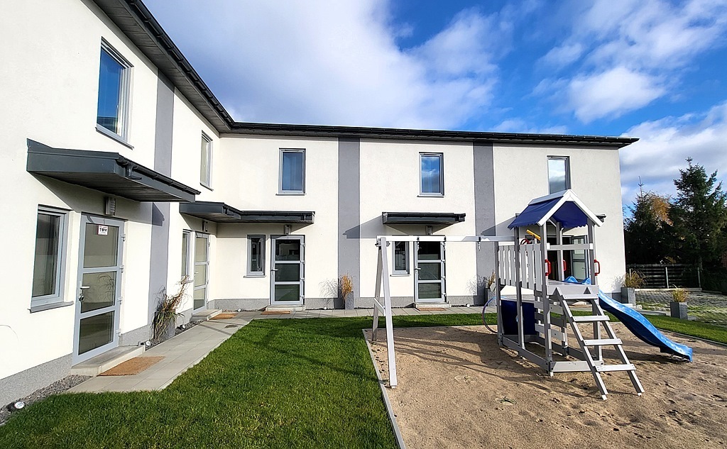 Teren wokół nienagannie zagospodarowany, przygotowany mały plac zabaw dla dzieci, wydzielony parking na 10 miejsc postojowych.