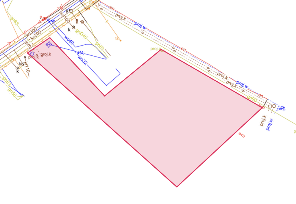 Ujęcie wody miejskiej jest na działce, kanalizacja miejska w drodze, z projektowanym ujęciem na działce, skrzynka ZK na działce, gaz w drodze.