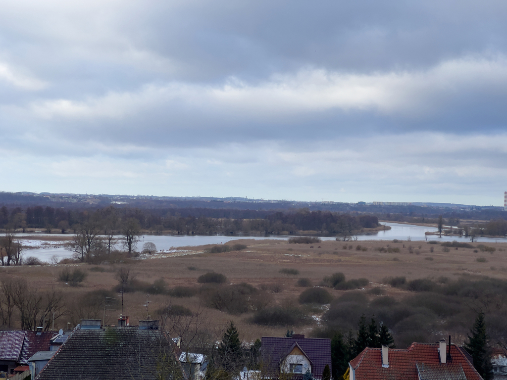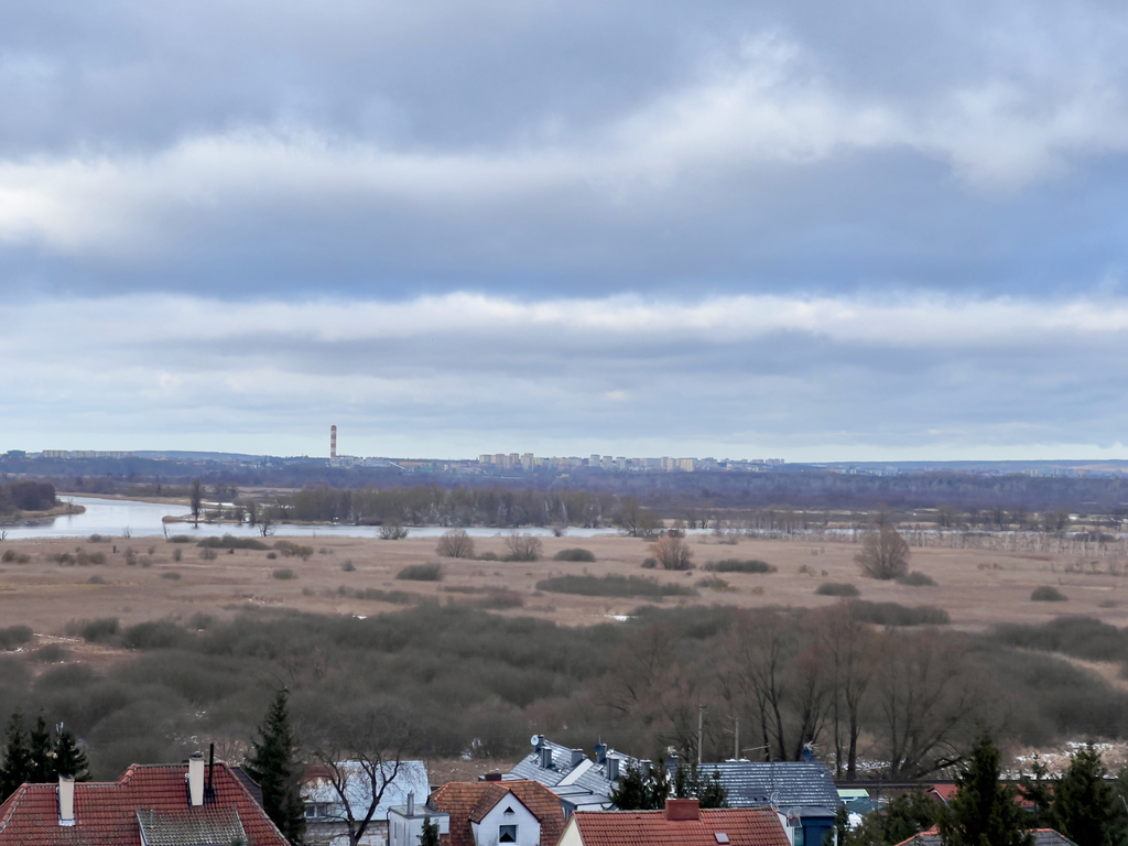 Nieruchomość leży na pochylonym terenie, z widokiem na panoramę Szczecina i Rezerwat przyrody Kurowskie Błota i Kanały.