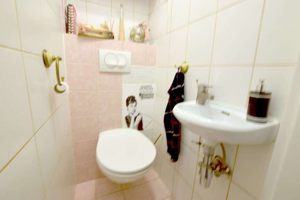 Łazienka i wc osobno w glazurze i terakocie.