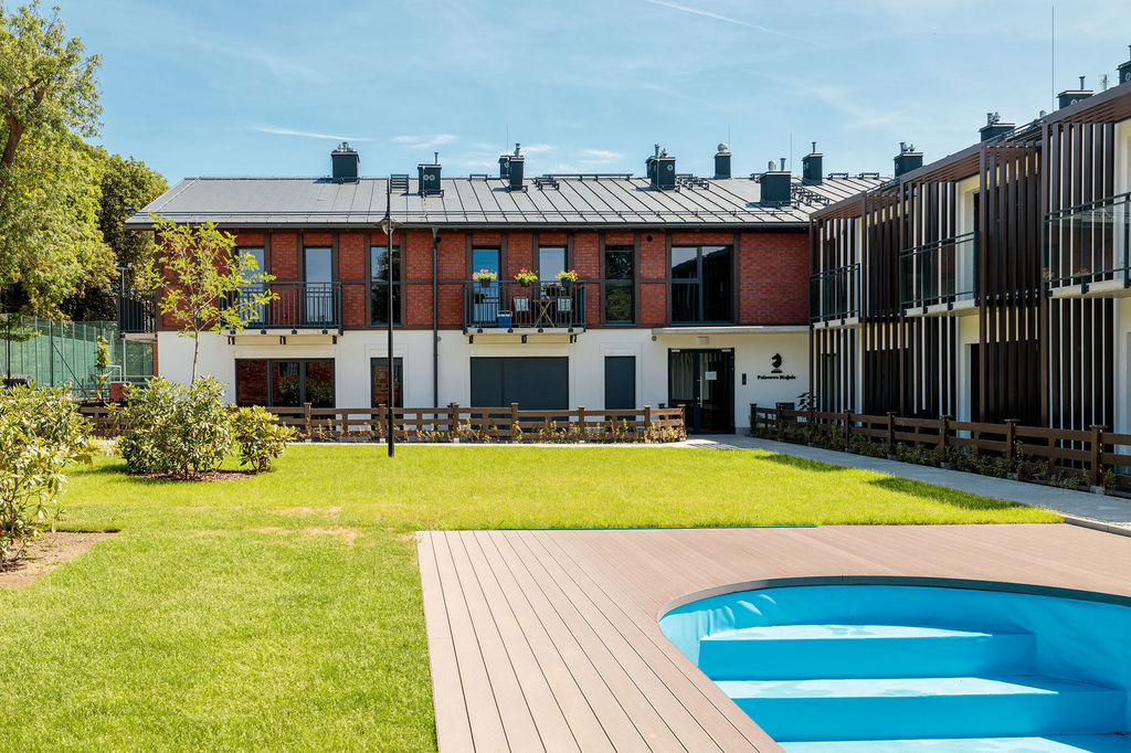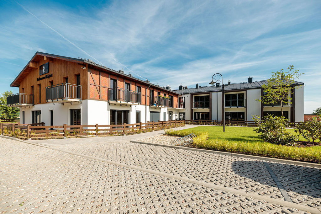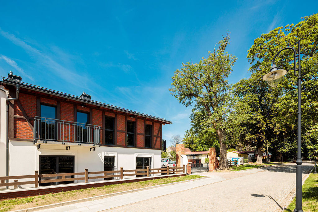 Proponowany apartament jest częścią inwestycji obejmującej 24 apartamenty o powierzchni od 29 m2 do 66,5 m2. Budynek stoi w miejscu pałacowej stajni i jest połączeniem nowoczesności z klimatem pobliskiego pałacu. Mur pruski oraz liczne drewniane elementy przepięknie nawiązują do byłej oraz istniejącej zabudowy.