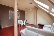 Nad całym mieszkaniem wysoki strych do ewentualnej adaptacji po uzgodnieniach ze wspólnotą mieszkaniową (z salonu można z powodzeniem wyprowadzić schody i stworzyć dwupoziomowy apartament).