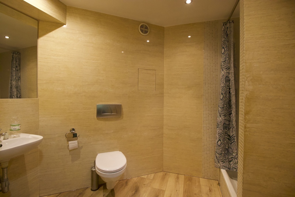 Przyziemie to gabinet z umywalką jak i z osobną łazienką i toaletą przystosowany pod usługi dla masażysty bądź zajęcia jogi.