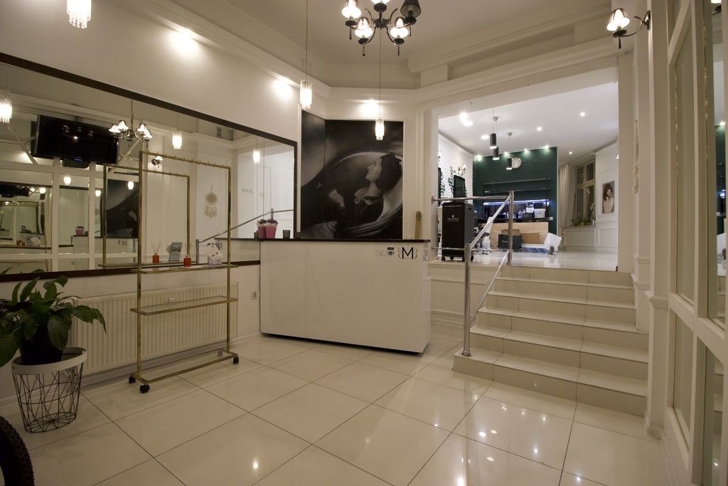 Na parterze znajduje się wiatrołap, holl z recepcją, a schody prowadzą do dalszej części parteru, gdzie zostało wydzielone miejsce pod usługi fryzjerskie z trzema stanowiskami, pomieszczeniem socjalnym oraz toaletą i korytarzem. W dalszej części znajduje się gabinet o powierzchni ok 35m2 z kabiną prysznicową, umywalką oraz osobnym wejściem/wyjściem na pario. Ten gabinet może posłużyć jako sala szkoleniowa w branży beauty, z czym szczeciński rynek ma deficyt.