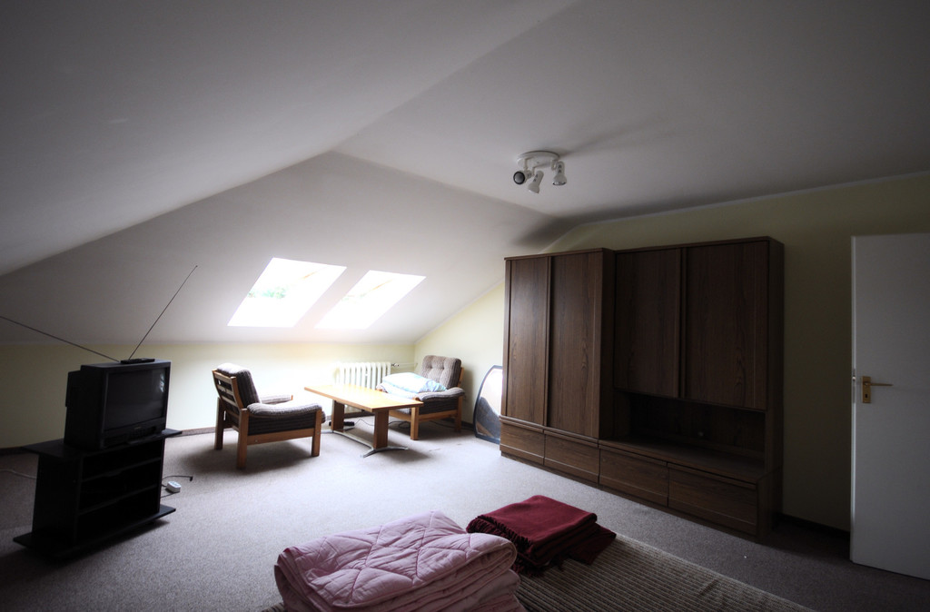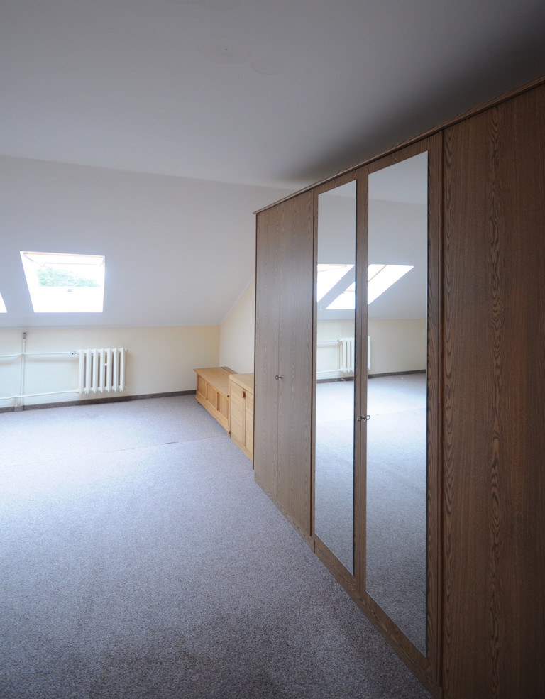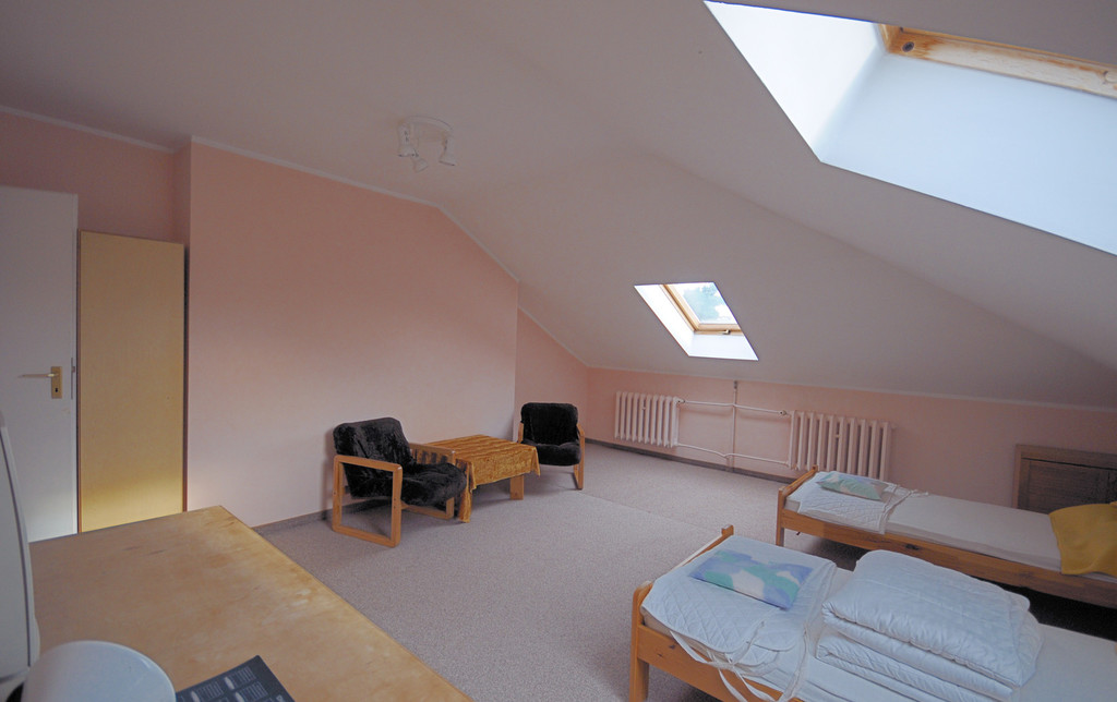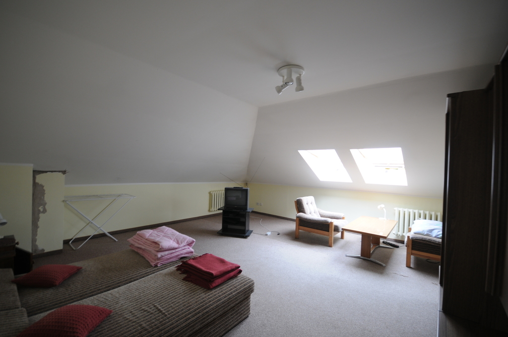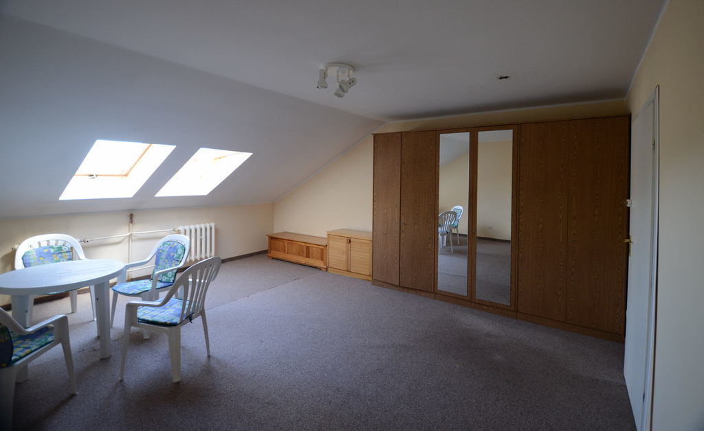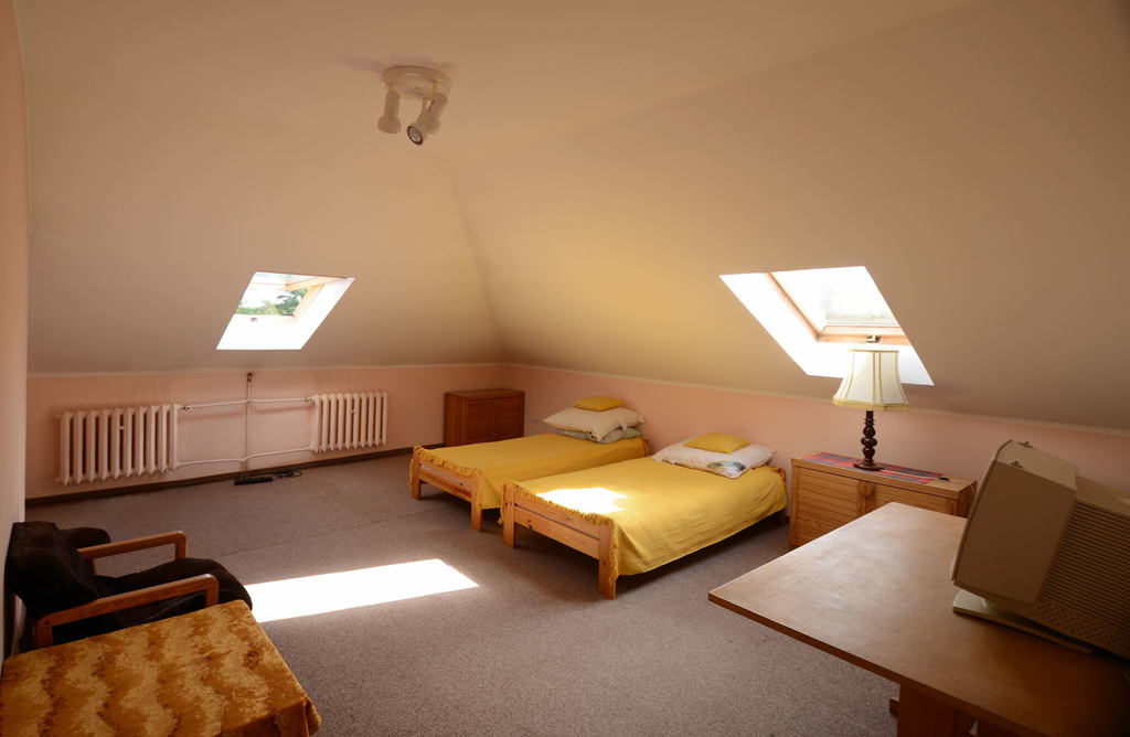 Obszerne powierzchniowo pokoje i kuchnia oświetlone są szczelnymi oknami połaciowymi typu „Fakro”.
