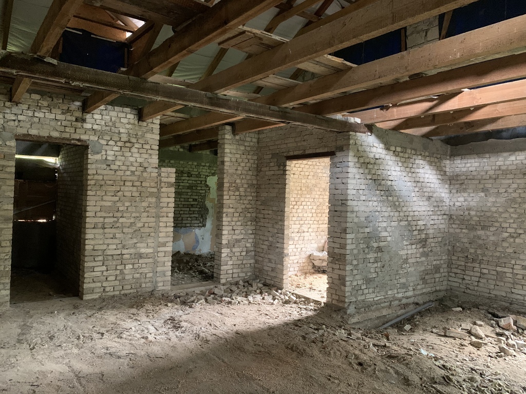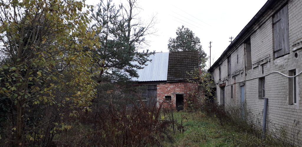 Budynek gospodarczy o powierzchni zabudowy 311 m2 wykonany jest z białej cegły, pokryty dachówką. Składa się z parteru oraz piętra z wysokim dwuspadowym dachem. Parter składający się z kilku pomieszczeń – socjalnych, magazynowych, warsztatowych z kanałem, można dostosować do własnych potrzeb. Piętro, to bardzo wysoki strych, który służył do przechowywania płodów rolnych. W większości pomieszczenia posiadają tynki i posadzki, z instalacją sanitarną i instalacją elektryczną. Pomieszczenia do własnej aranżacji.