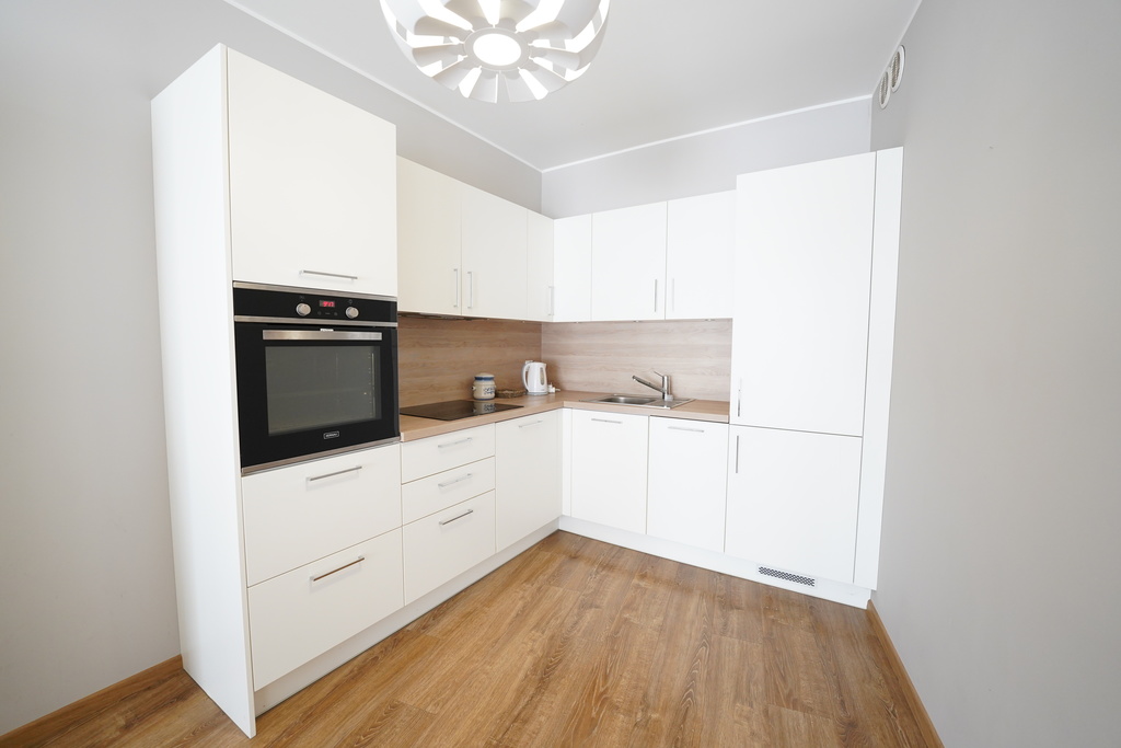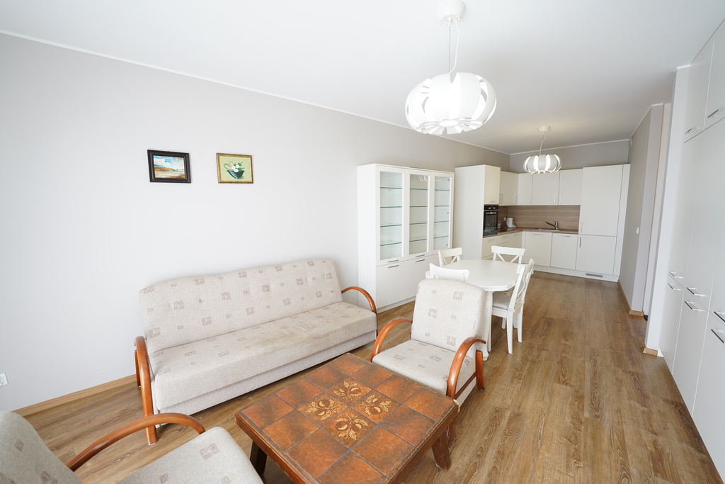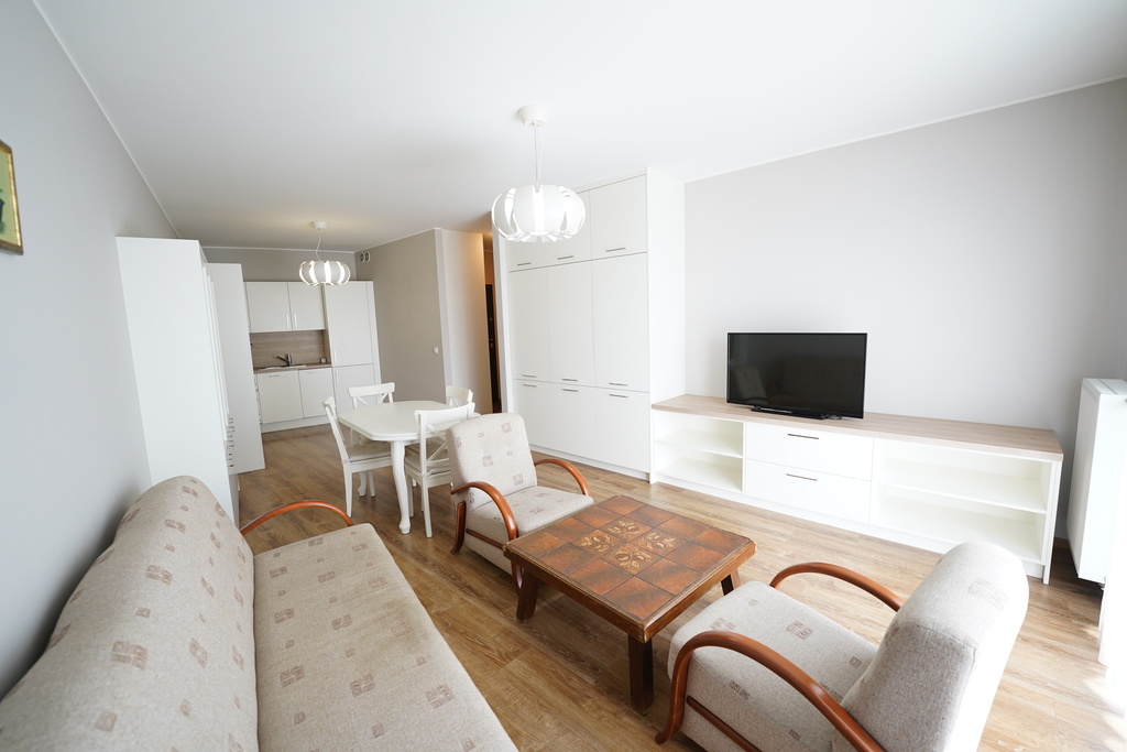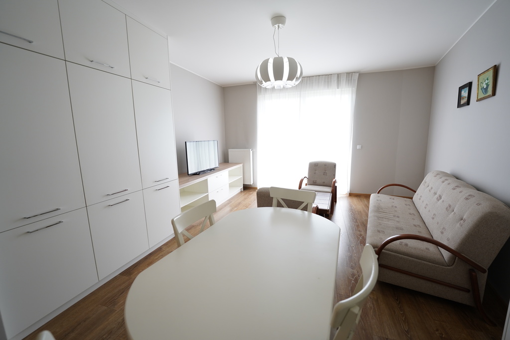 Duży pokój z aneksem kuchennym ok 28m2, sypialnia ok 10m2.