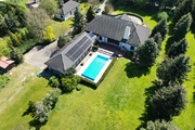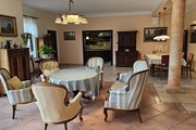 Do sprzedania nietuzinkowa rezydencja położona na dwu hektarowej działce otoczonej otuliną prywatnego lasu. Nieruchomość wybudowana w formie dworku z prywatnym basenem jeziorkiem oraz domkiem dla gości. Całość domu wybudowana w 2001 roku z bloczków firmy Fortis pokryta dachówką cementową. Okna PCV z szybami antywłamaniowymi w kolorze palisander. CO i CW własne gazowe + wspomaganie poprzez baterie solarne. Zamontowana instalacja fotowoltaiczna o mocy 9,5 kWh co w całości pokrywa zapotrzebowanie w energie elektryczną całego domu. Na 716 m powierzchni całkowitej składają się: hol, WC, trzy sypialnie, kuchnia, jadalnia, spiżarnia, trzy łazienki razem z WC, pomieszczenia gospodarcze, pralnia, pokój relaksu z sauną, garaż trzy stanowiskowy z kanałem. 113- metrowy salon z wyjściem poprzez system panoramicznego okna przesuwnego typu HS na duży taras i zejście do basenu. Kominek w salonie + kominek z grillem za tarasie ogrodowym. Basen o wymiarach 12×5, woda z własnego ujęcia ze studni ogrzewana poprzez maty solarne oraz pompę ciepła. Całość poddasza użytkowego wielkości 288 m2 do dodatkowego zagospodarowania. Obok domu znajduje się 70 m2 całoroczny domek dla gości (salon +sypialnia + kuchnia +łazienka). Część ogrodowa wyposażona w system automatycznego podlewania z własnej studni głębinowej. Całość posesji zagospodarowana 30-sto letnim drzewostanem z wkomponowanym zarybionym stawem. Dwa lata temu została wymieniona na zupełnie nową oczyszczalnia biologiczna dla całej posesji. Rezydencja dla osób cenionych prywatność spokój i komfort. Zapraszamy na prezentację opisywanej rezydencji. Chcesz się poczuć luksusowo to zapraszam do osobistej weryfikacji i kontaktu z maklerem prowadzącym.
