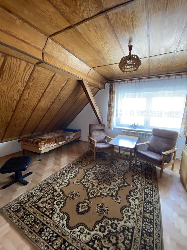 Parter-osobne mieszkanie (2 pokoje, kuchnia, łazienka, obecnie jest wynajęte), ponadto dodatkowy pokój.