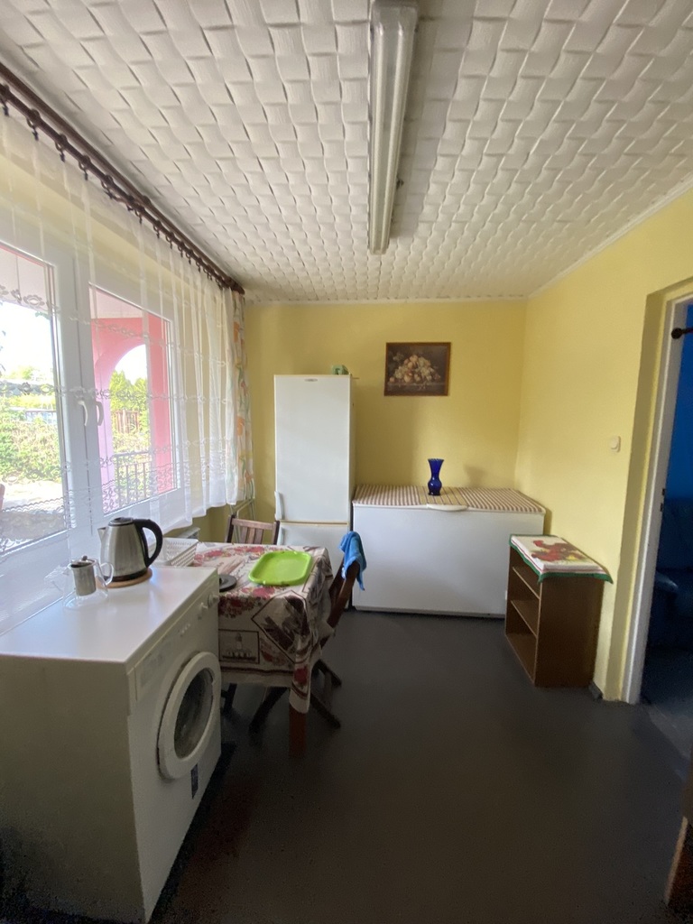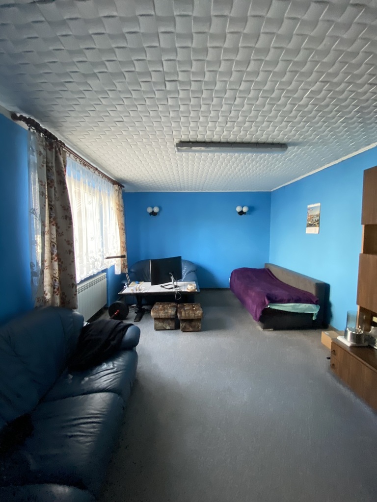 Hala produkcyjna o powierzchni 110m2, wysokość ok. 5m., obecnie wynajęta (szczegóły finansowe będą przekazane zainteresowanym). Hala połączona z domem.
