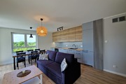 Lokum składa się z trzech słonecznych pokoi, które dzięki południowej ekspozycji okien są doskonale doświetlone przez cały dzień. Kuchnia jest wyposażona w nowoczesny sprzęt AGD, a w salonie znajduje się telewizor. Wszystkie pomieszczenia są wykończone w wysokim, atrakcyjnym standardzie.