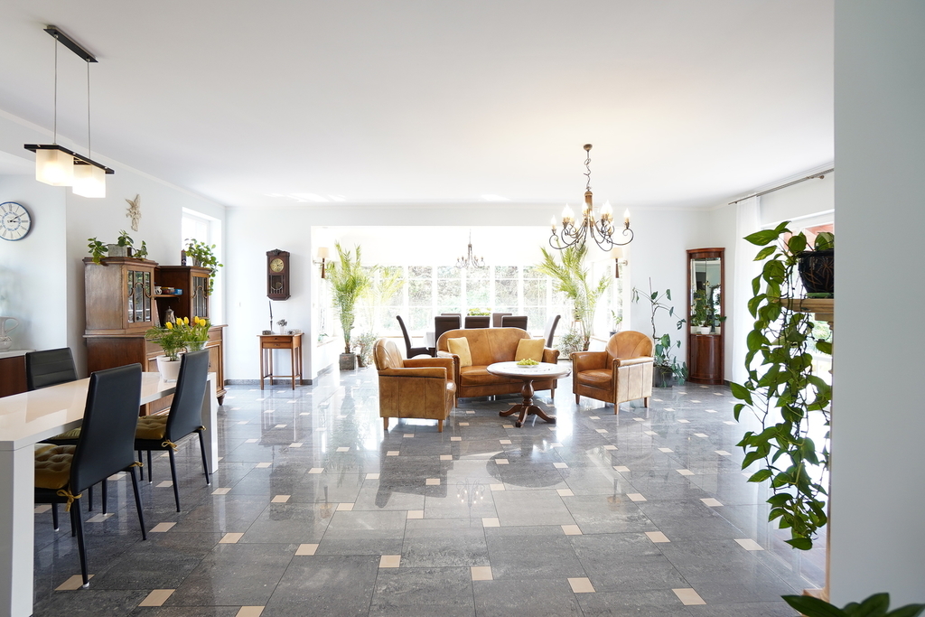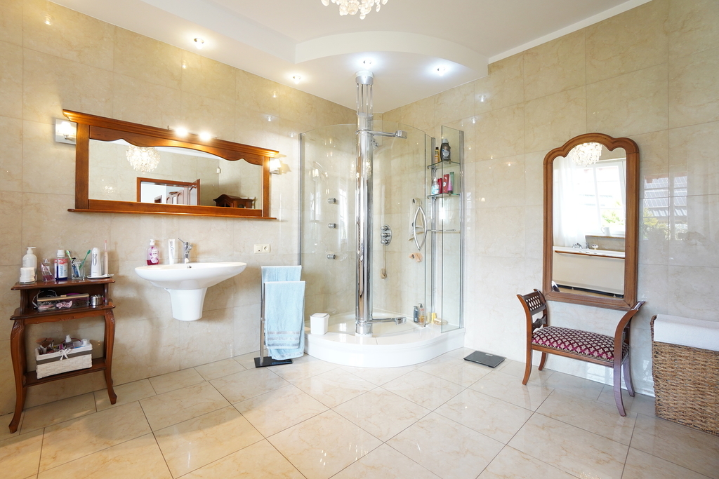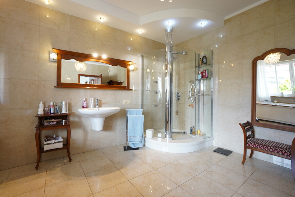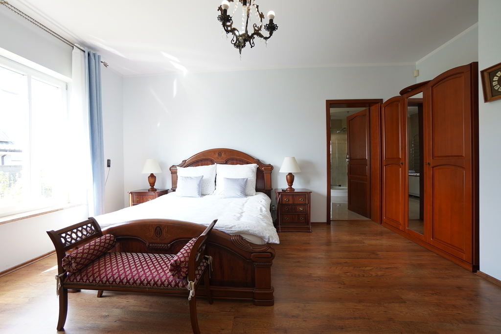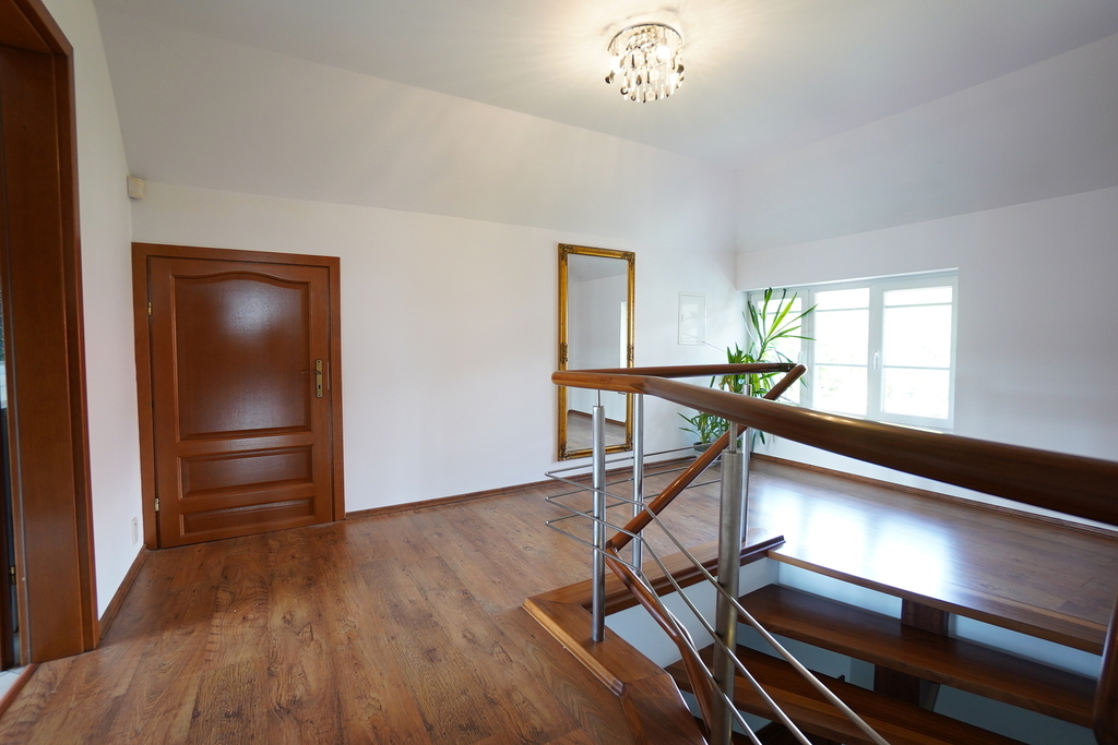 Dom posiada wiele nowoczesnych rozwiązań m.in: studnia głębinowa z hydroforem, instalacje alarmowe, kominek,  ogrzewanie podłogowe. Dom jest wykonany z najwyższej jakości materiałów i jest gotowy do wprowadzenia się. Nieruchomość posiada wyjątkowy styl, z każdej strony domu wpada dużo światła, przez co wnętrze jest bardzo jasne .