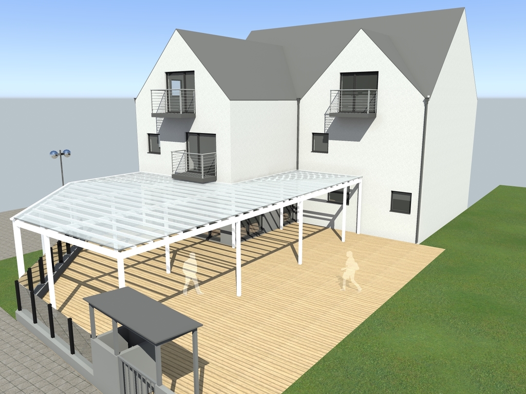 I piętro- 4 apartamenty 2 osobowe z łazienkami i tarasami oraz jeden apartament 3 osobowy z łazienką i tarasem .