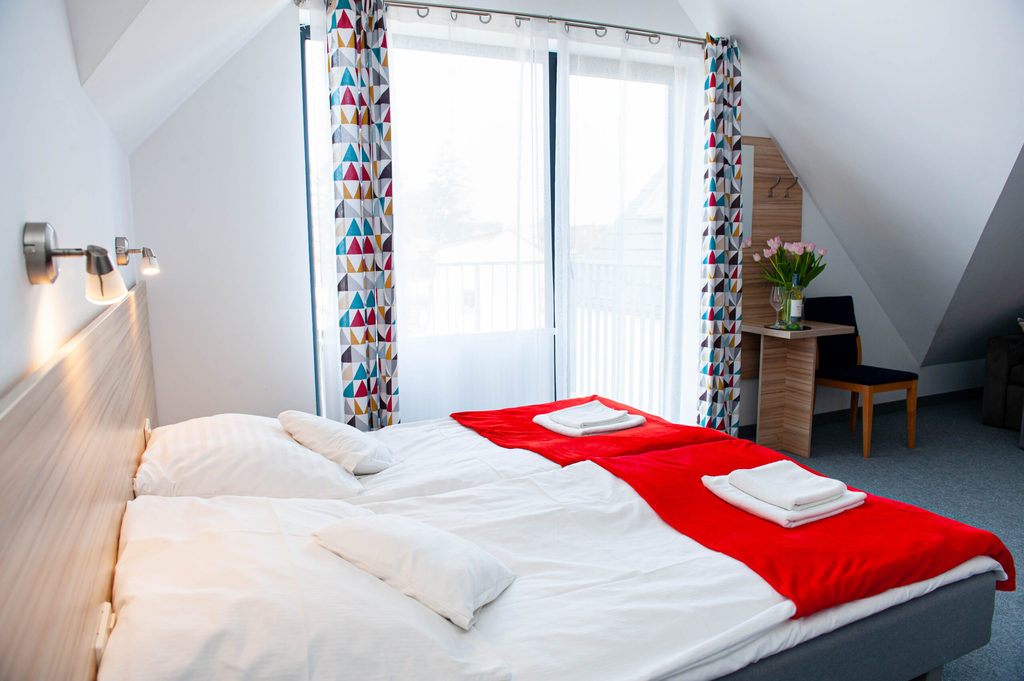 Wszystkie pokoje widne , umeblowane w podwójne lub pojedyncze łóżka, szafy, tv oraz ogólnodostępne wifi .
