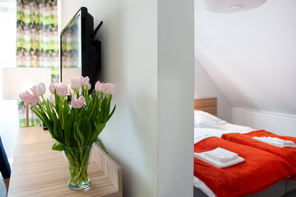 Każdy z pokoi jest przestronny, wyposażony w wygodne łóżka, telewizor z płaskim ekranem, radio oraz nowoczesną łazienkę z prysznicem co gwarantuje gościom prywatność i spokój.