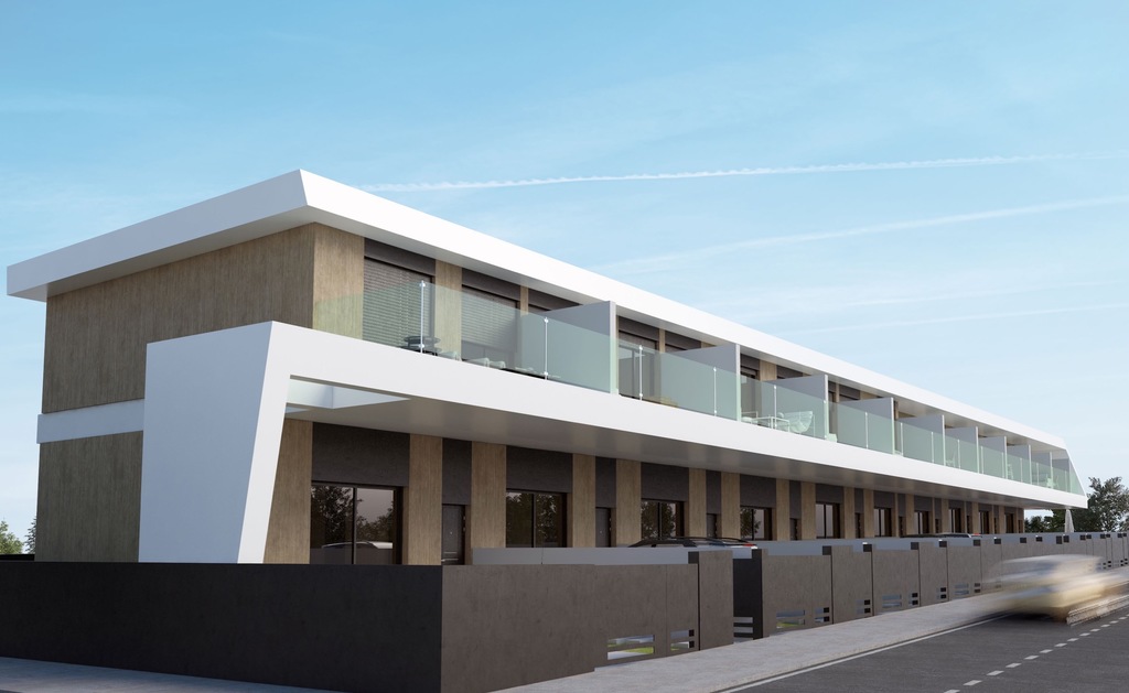 Prezentujemy kameralne osiedle domów szeregowych w Pilar de la Horadada. Inwestycja powstaje w bardzo intensywnie rozbudowującej się części miasteczka, w sąsiedztwie innych nowych kameralnych osiedli bungalowów, domów i willi, przy zielonej alei La Rambla. Powstaje tu kawałek naprawdę ładnej przestrzeni, idealnej do posiadania wakacyjnej nieruchomości, w typowym hiszpańskim miasteczku tętniącym życiem przez cały rok, tylko 3 km od morza i 3 km od pola golfowego.