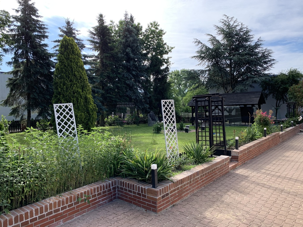 Teren wokół domu zadbany, regularnie pielęgnowany, zorganizowana strefa wypoczynku z dużą wiatą i grillem oraz huśtawką.