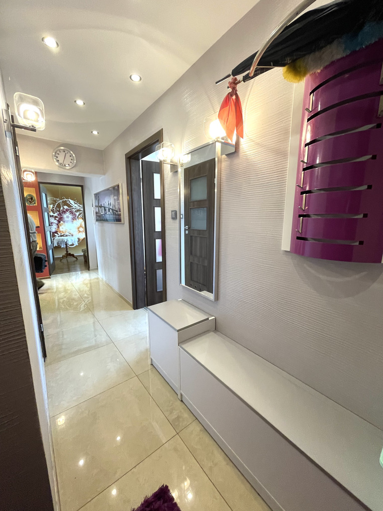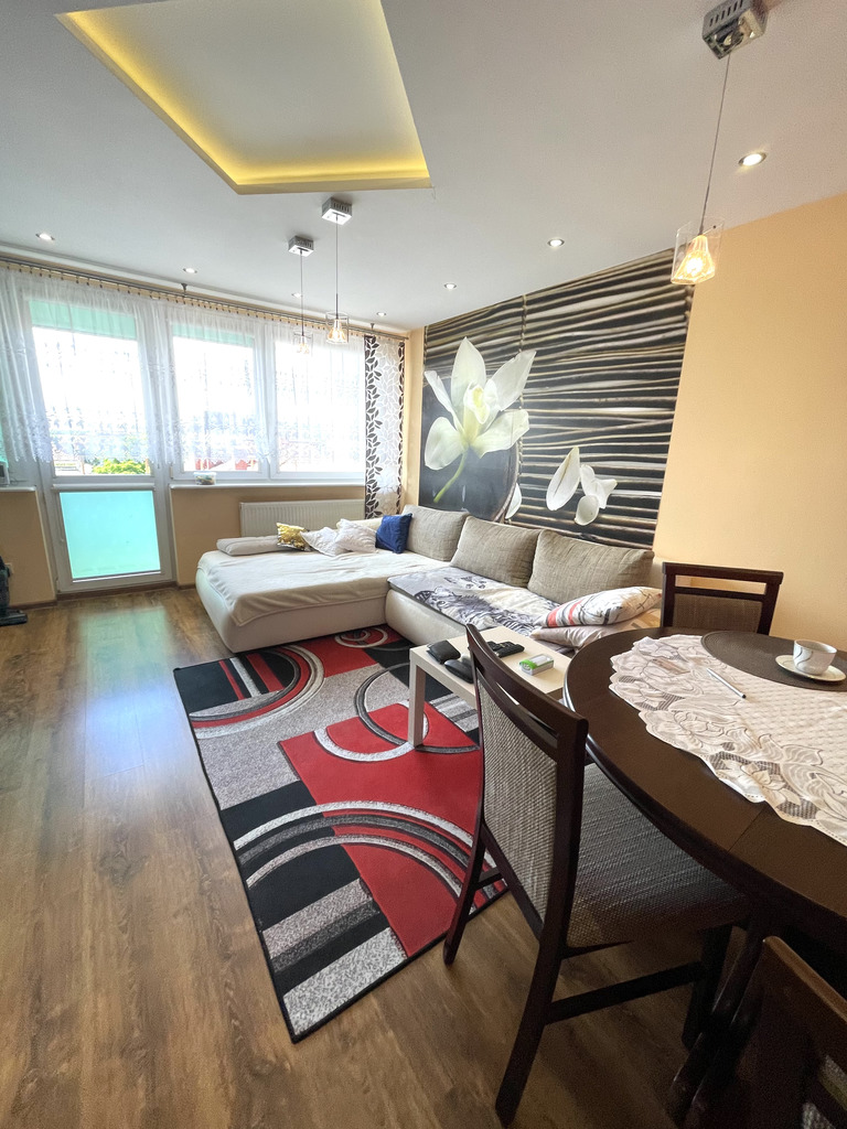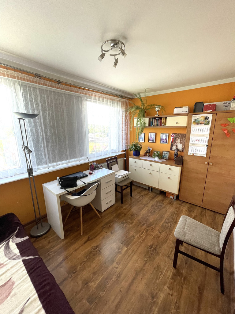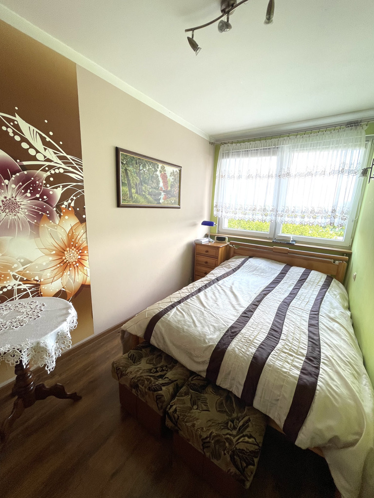 Mieszkanie składa się z trzech pokoi w tym jeden z balkonem, kuchni, łazienki oraz przedpokoju o łącznej powierzchni użytkowej 60m^2. Mieszkanie 10 lat temu przeszło generalny remont (wymieniona instalacja elektryczna oraz wodno-kanalizacyjna). Na podłodze panele oraz terakota. Do mieszkania przynależy piwnica. Istnieje możliwość dokupienia garażu w cenie (40.000 zł ).