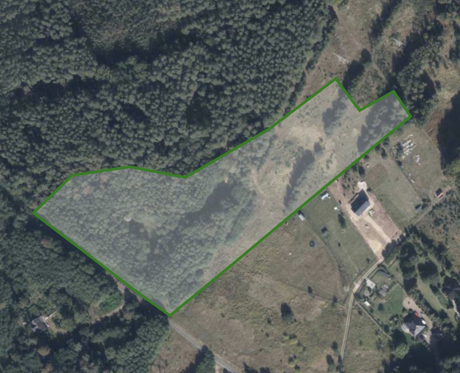 Działka ma 33.683m2 i położona jest w otulinie Puszczy Bukowej, dookoła jest bardzo dużo zieleni, stawy oraz miejsca do rekreacji.
