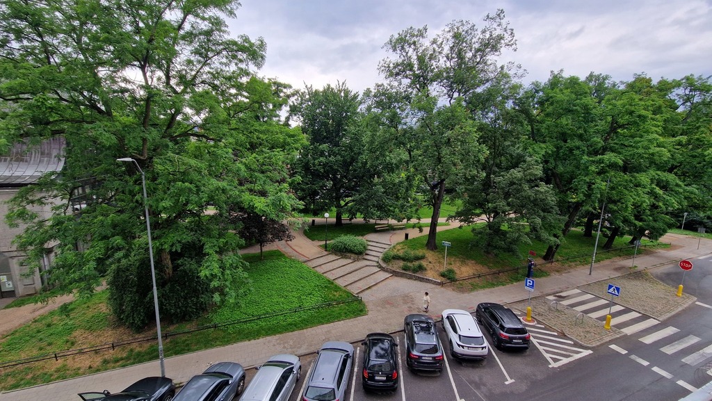 Nieruchomość ogrzewana z pieca gazowego dodatkowo posiada również zamontowaną klimatyzację. Jeden z pokoi biurowych posiada balkon z widokiem na Park Generała Andersa.