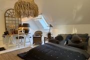 Na parterze znajduje się również duży pokój o powierzchni ok.30 metrów z sypialnią, z osobnym wejściem.