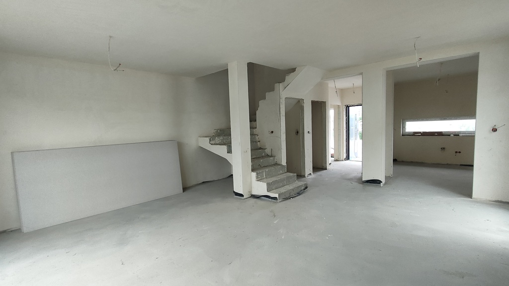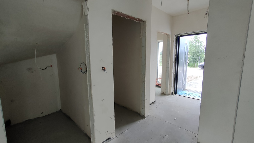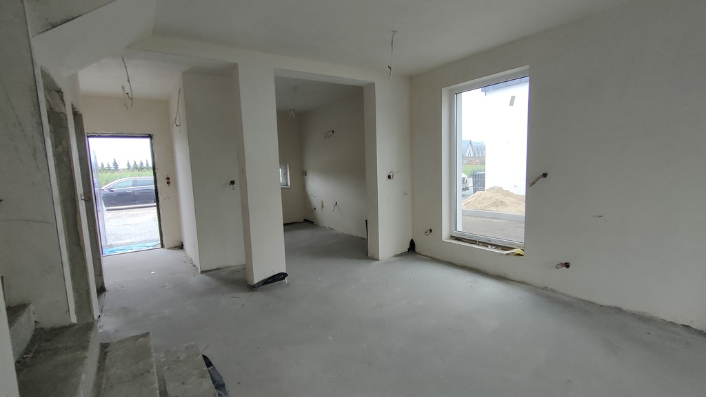 Nowy przestronny budynek w zabudowie bliźniaczej jednopiętrowy o powierzchni całkowitej 103,8 m2. Bardzo dobry i łatwy dojazd do budynku drogą asfaltową oświetloną. Teren ekologicznie czysty. Świeże powietrze i otwarte tereny zielone w pobliżu domu. W sąsiedztwie przytulne osiedle domów wolnostojących, gdzieniegdzie urozmaicone zabudową bliźniaczą.