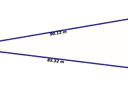 Kształt działki zbliżony do trójkąta, wymiary: ok. 90m x 30m.