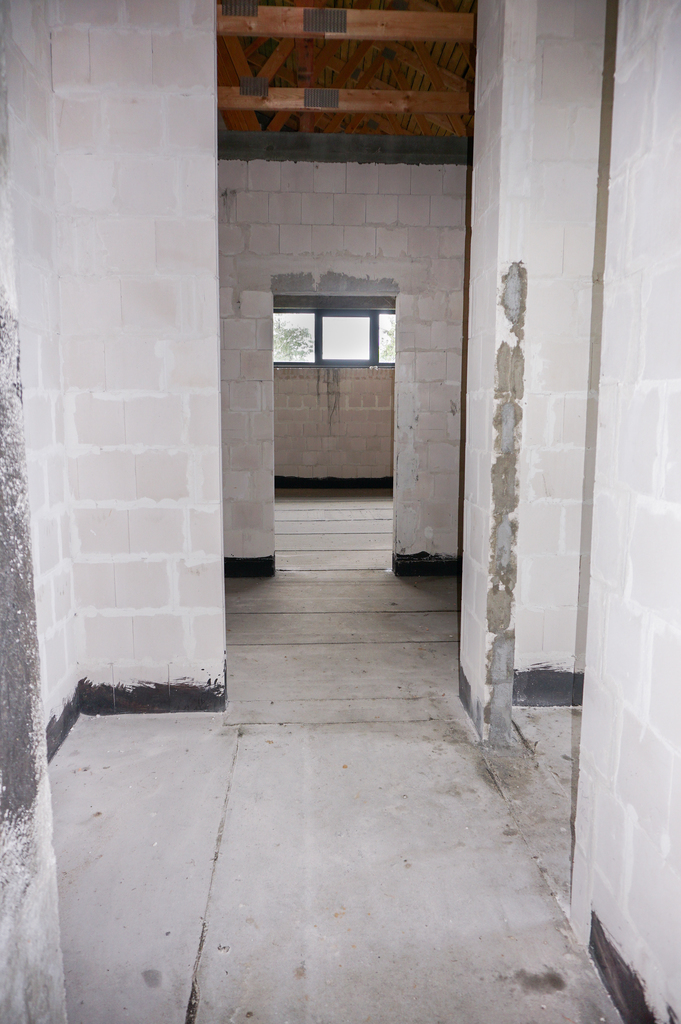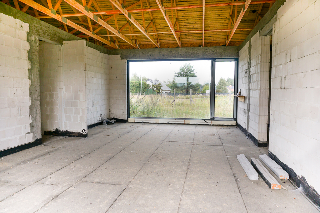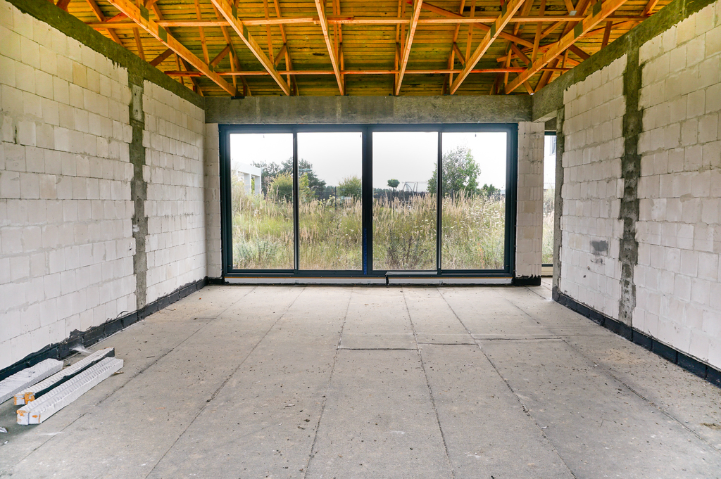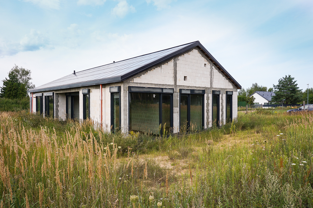 Dom z bloczków, okna aluminiowe w systemie Reynaers Aluminium MasterLine 8Hl+, więźba dachowa z drewna skandynawskiego,