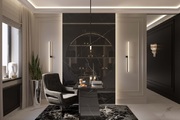 Jedna z dwóch głównych sypialni o pow. 20,81 m² ,znajduje się na parterze, po prawej stronie od wejścia i obejmuje dużą, luksusową łazienkę o pow. 13,65 m² oraz garderobę składającą się z dwóch połączonych pomieszczeń, wyposażonych w elegancką zabudowę. Pierwsze pomieszczenie garderoby ma pow.10,80 m² drugie o pow. 11,95 m². Garderoba ta pozwala na podział na część damską i męską lub letnią i zimową, według uznania.