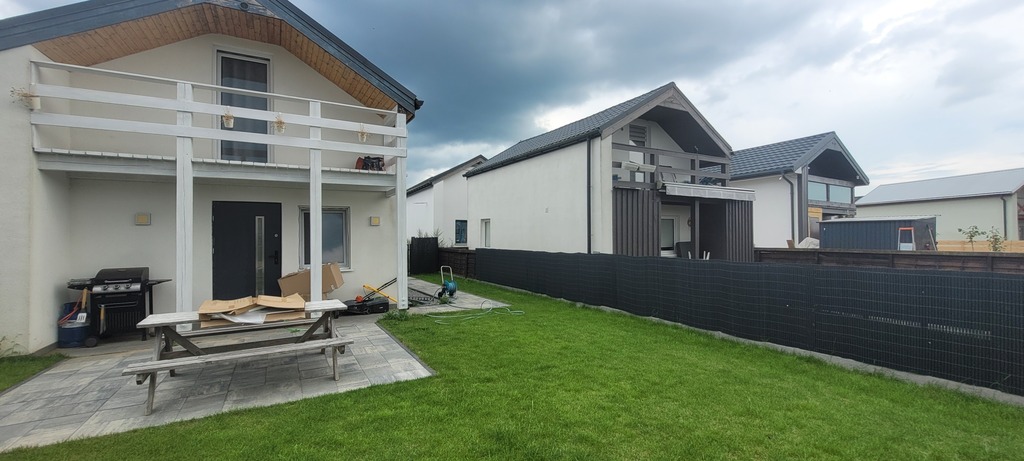 Domek świeżo wykończony i wyposażony w nowe meble i sprzęty. Na podłodze w części dziennej oraz na poziomie I – panele. W cześci kuchennej oraz łazience terakota.