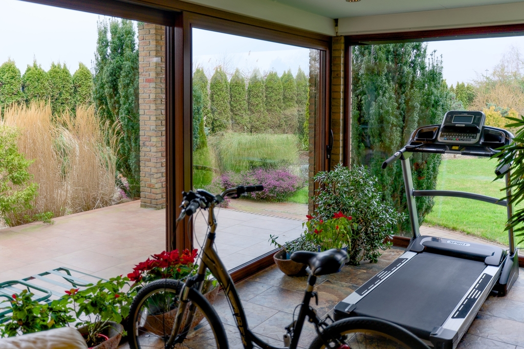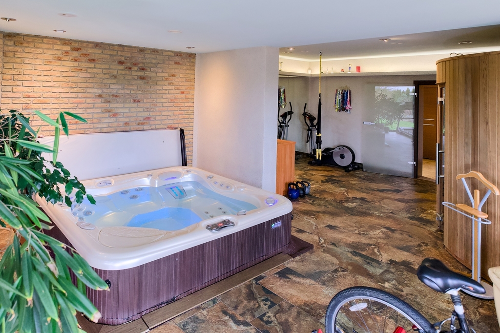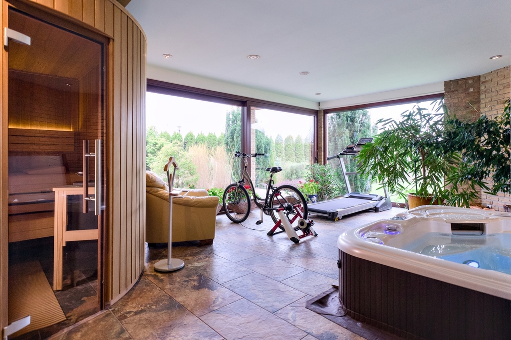 – przestrzeń relaksu/ SPA z sauną, jacuzzi i miejscem do ćwiczeń, z wyjściem do ogrodu, natrysk.