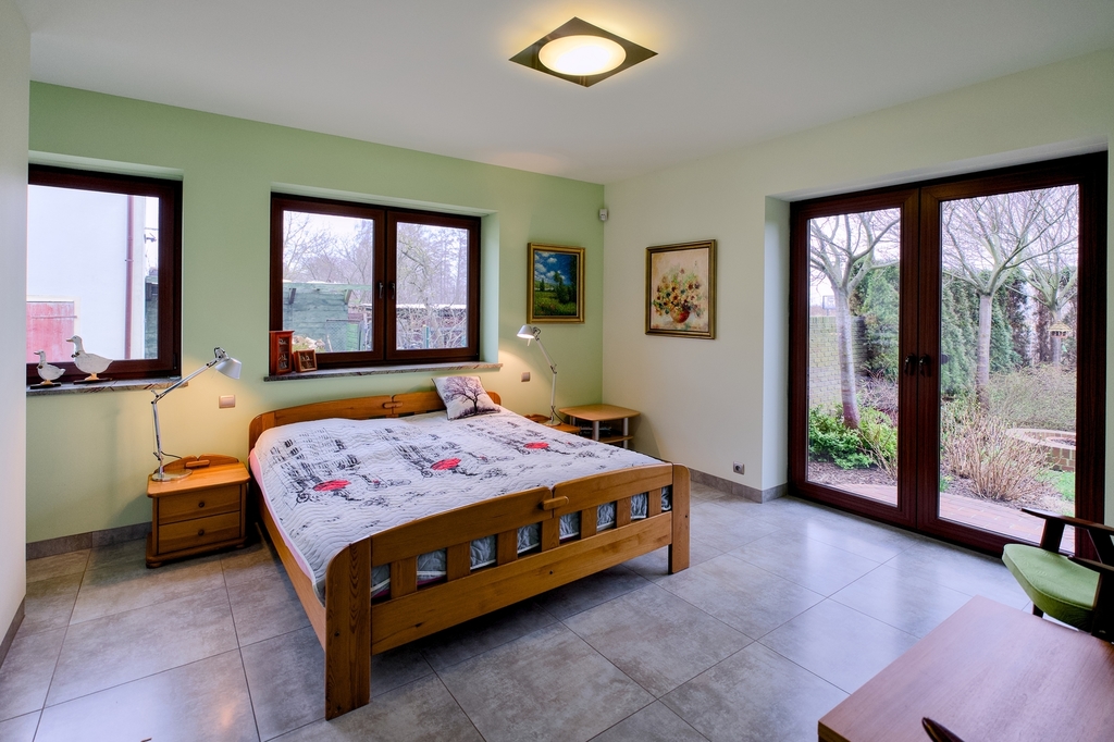 – główna sypialnia z własną garderobą i wyjściem na taras
