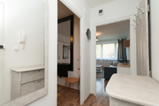 Mieszkanie znajduje się na pierwszym piętrze wieżowca. Składa się z pokoju dziennego, osobnej kuchni otwartej przez blat na pokój, łazienki z kabiną prysznicową i przedpokoju.