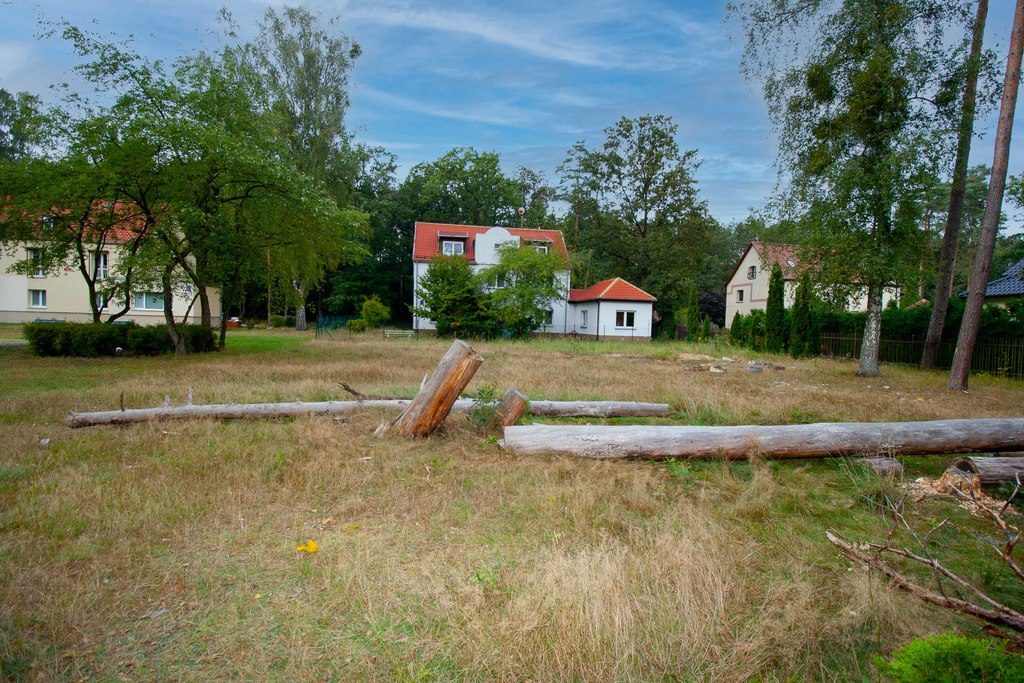 Teren położony w śród drzew jednocześnie blisko centrum handlowo usługowego miasta, szkół i przedszkoli