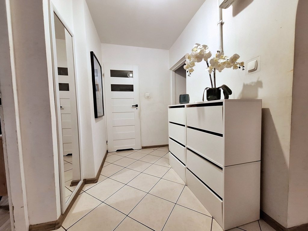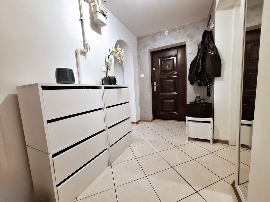Mieszkanie jest świetnie zlokalizowane, w pobliżu znajdują się sklepy, szkoły oraz przystanki komunikacji miejskiej, co czyni je idealnym miejscem zarówno dla rodzin, jak i osób poszukujących spokojnego otoczenia z szybkim dostępem do miejskich udogodnień.