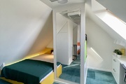 – Powierzchnia użytkowa mieszkania: 42,23 m2. Powierzchnia całkowita wraz z poddaszem wynosi około 60 m2.