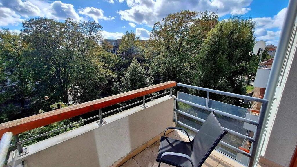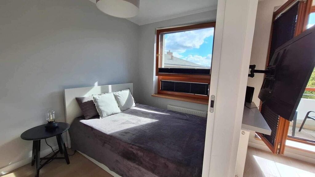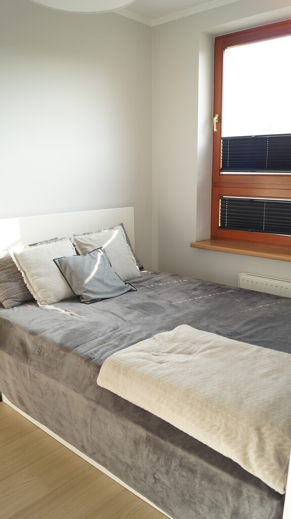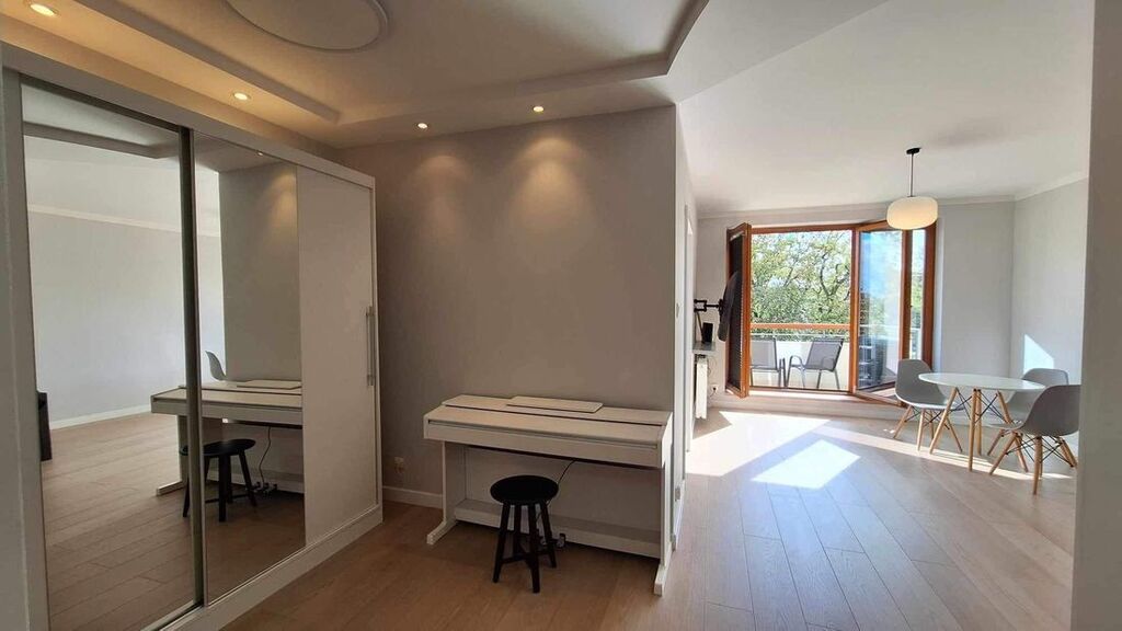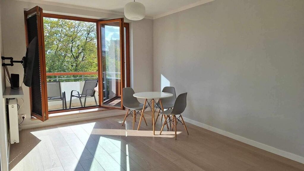 Mieszkanie charakteryzuje się jasnym i przestronnym salonem z dużymi oknami do podłogi, które zapewniają mnóstwo naturalnego światła i prowadzą na balkon. Z salonu rozpościera się widok na korony drzew, co gwarantuje prywatność i bliskość natury. Aneks kuchenny jest wyposażony w nowoczesne sprzęty, takie jak piekarnik, płyta grzewcza i lodówka. Przytulna sypialnia oferuje doskonałe doświetlenie i widok na zieleń, a nowoczesna łazienka z przestronną kabiną prysznicową jest wykończona w wysokim standardzie. Dodatkowo, mieszkanie dysponuje dwiema szafami typu komandor oraz wolnostojącą szafą z pralką, co zapewnia sporo miejsca do przechowywania. Słoneczny balkon z widokiem na zieleń to idealne miejsce na poranną kawę czy wieczorny relaks. Mieszkanie przeszło generalny remont i zostało urządzone z użyciem wysokiej jakości materiałów. Zamontowane rolety okienne termoizolacyjne pozwalają na stuprocentowe zaciemnienie, ograniczając nagrzewanie się pomieszczeń.