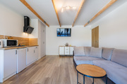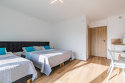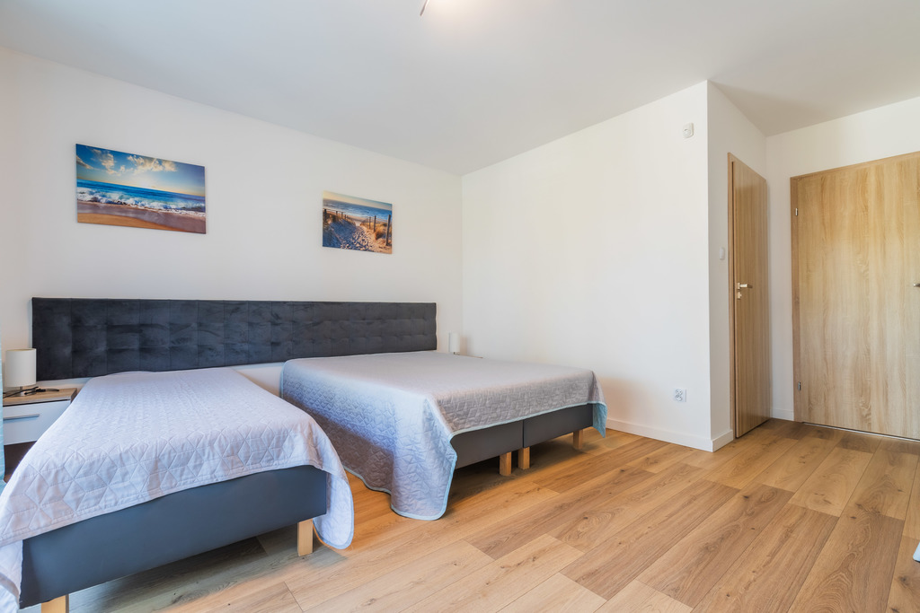 Pokoje wyposażone są w wygodne łóżka kontynentalne oraz sofy rozkładane, stoły wraz z krzesłami, szafy, tv 40 i 50 calowe.. W każdym z pokoi znajduje się także lodówka, mikrofalówka, czajnik, komplet naczyń, sprzęt plażowy.