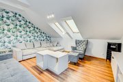 Apartament jest pięknie zaprojektowany oraz komfortowo wykończony i wyposażony m.in. w saunę, wannę z hydromasażem, stół bilardowy.