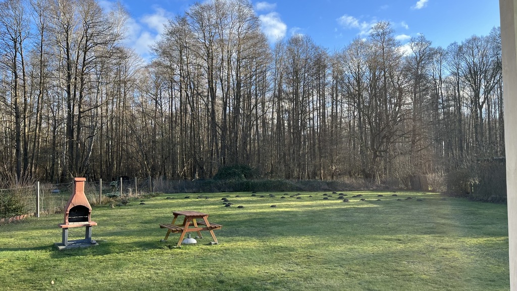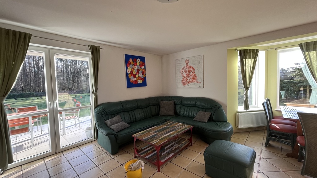 Z salonu jest wyjście na taras z pięknym widokiem na las od strony południowej.
