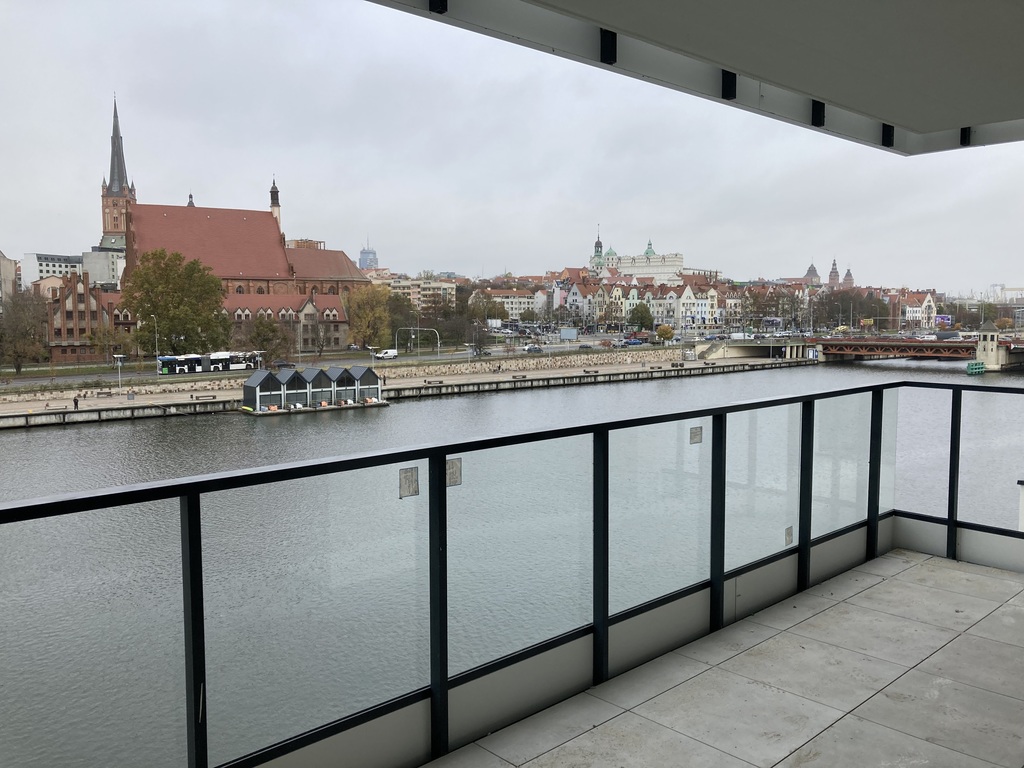 Mieszkanie posiada zarówno taras jak i ogródek wychodzący na zielone, wewnętrzne patio. Z patio można wejść na ogólnodostępny taras z widokiem na Szczecin.