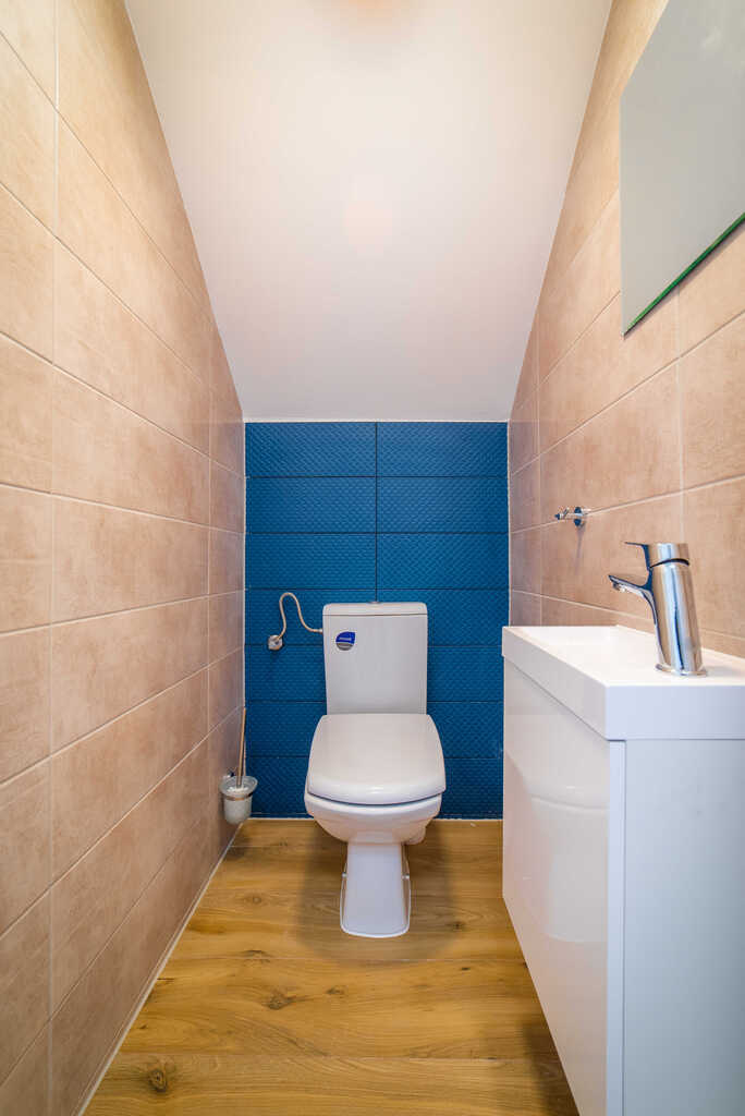 Na piętrze znajdują się dwie sypialnie oraz toaleta.