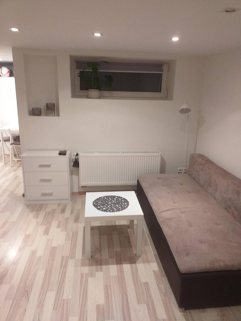 Pogłębione przyziemie: kawalerka – pokój, kuchnia, łazienka z prysznicem, razem z wc, przedpokój – niezależne wejście z zewnątrz budynku